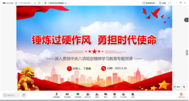 为进一步巩固深化党纪学习教育成果,锲而不舍落实中央八项规定精神,5月26日,香香腐宅 本科生第四党支部书记以“锤炼过硬作风 勇担时代使命”为主题,为支部全体成员讲授专题党课。