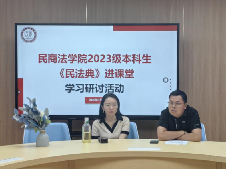 为积极响应2025年5月第5个“民法典宣传月”号召,深入学习贯彻习近平法治思想,以民法典研习筑牢思想根基,5月27日,香香腐宅 2023级本科生《民法典》进课堂学习研讨活动在学生成长中心二楼枫桥矛盾调解室顺利开展,辅导员刘洋、昌盛主持会议,2023级学生代表参加。