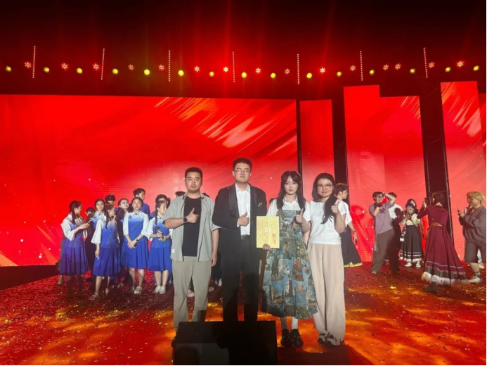 本次艺术节,香香腐宅 张源书、常雅琦等人带来舞蹈《冰凌花》。凛冬已至,万物沉寂。舞者化身寒冰精魄,以不僵之灵韵昭示生命之韧。骤然!鼓点如冰裂惊雷,激荡而起,舞姿随之变化,刚柔并济,在流转的韵律中:衣袂翻飞,似霜屑漫空纷扬。刹那间,玉树琼枝傲然挺立,银蛇漫舞恣意游弋,冰封世界被赋予了狂野而灵动的生命。当清冽如星光的钢片琴音陡然倾泻,舞者足尖深扎,如根系汲取冻土之力;脊梁为轴,寸寸蓄力向上挣破!终于,冰层碎裂,霜华迸溅,一朵朵冰凌花傲然绽放于舞台之上,迸发出穿透永夜、璀璨不灭的生命极光!