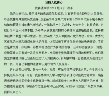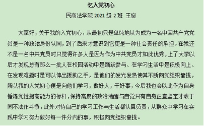 交流中,党员们围绕“为何入党”“何为党员担当”等展开赤诚对。有人回溯递交入党申请书时的激动时刻,将初心锚定在“为人民服务”的朴素信仰中;有人结合法学专业背景,坦言要让党员身份成为践行公平正义的精神标尺;更有人以未来职业规划为引,承诺在司法实践中始终保持入党时的纯粹热忱。这场跨越空间的思想碰撞,没有华丽辞藻,却在一句句真挚的自我剖白中,勾勒出民商学子“党徽与法徽同辉”的精神底色。