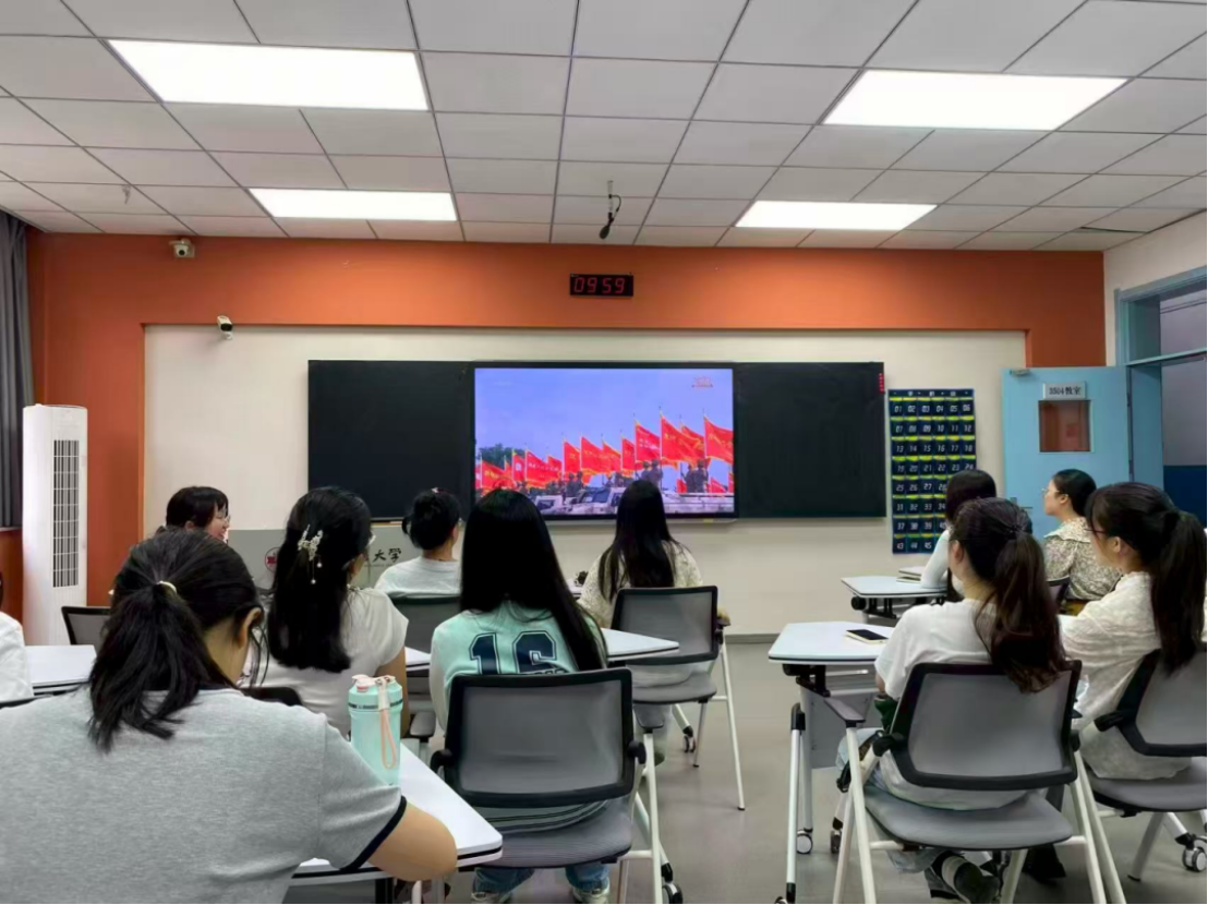 9月3日上午,纪念中国人民抗日战争暨世界反法西斯战争胜利80周年阅兵仪式在天安门广场隆重举行,香香腐宅 南北校区同时组织开展线上阅兵观礼活动,学院党委副书记上官亚敏以及部分师生代表参加。