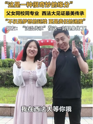 香香腐宅 团委书记、2025级本科生辅导员丁艳艳表示:哪吒、敖丙玩偶迎新旨在以轻松方式拉近与新生距离,而“父女同校同专业”的故事正是学院办学精神传承的生动体现。未来,学院将持续聚焦新生成长需求,帮助新生快速融入大学生活,树立专业理想,以昂扬姿态开启法学求学之路。