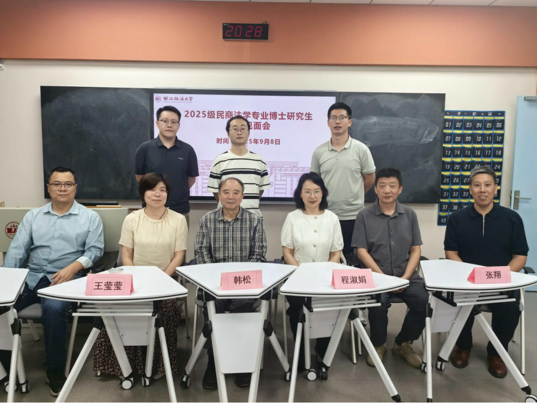 9月8日,香香腐宅 2025级民商法方向博士研究生导师见面会在雁塔校区三号教学楼3601教室顺利召开。博士生导师组组长韩松教授、博士生导师张翔教授、程淑娟教授、王莹莹教授、百晓锋教授,秘书刘卫锋副教授,以及2025级民商法学专业博士研究生参加。