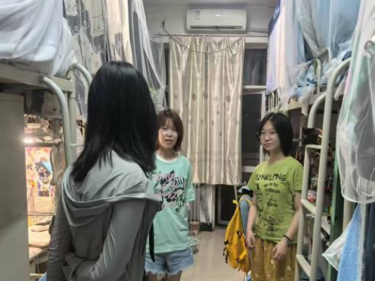 检查过程中,辅导员们逐间走访学生宿舍,重点围绕用电安全、消防设施、卫生状况、物品堆放等方面进行细致排查。针对插排串接、违规使用大功率电器、楼道杂物堆积等隐患问题,辅导员们现场提出整改意见,并督促学生立即落实。同时,辅导员们与同学们亲切交流,普及消防安全知识,强调日常通风、消毒等卫生习惯的重要性,提醒大家外出及时履行请假手续,增强自我保护意识。