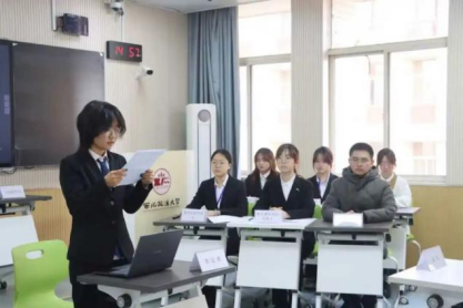 模拟法庭环节,审判长依据相关法律法规对确认有罪的被告人进行判决。模拟法庭现场气氛庄严肃穆,以真实案例为蓝本,全程再现了庭审的真实情景,同学们切实感受到了司法的威严,深刻领悟到了法律的重要性。