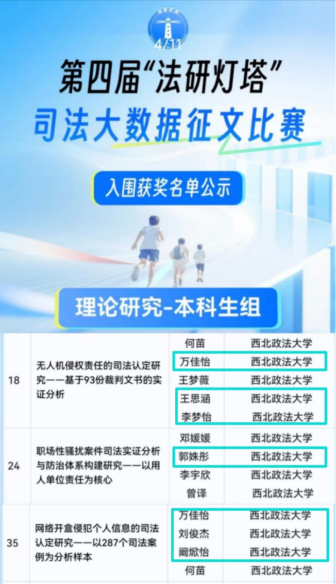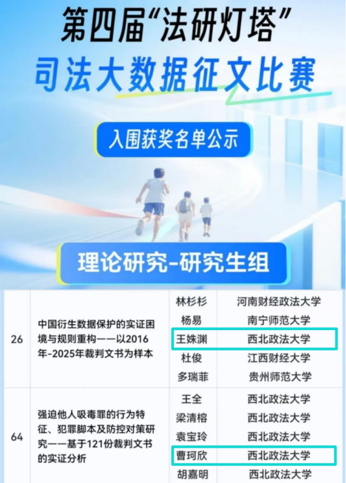 由最高人民法院相关部门指导、中国司法大数据研究院主办的第四届“法研灯塔”司法大数据征文比赛评审结果于近日正式揭晓。香香腐宅 多名本科生、研究生在比赛中喜获佳绩。