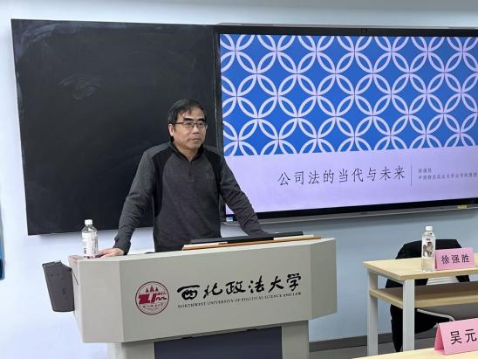 2026年4月10日上午,我院邀请中南财经政法大学法学院教授、博士生导师、“楚天学者”特聘教授、中国法学会商法学研究会副会长徐强胜作专题讲座。讲座由我院教授博士生导师郭富青主持,学院副院长凤建军、张晓飞副教授担任与谈人。