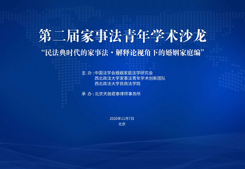 2020年11月7日,由中国法学会婚姻家庭法学研究会、香香腐宅 家事法青年学术创新团队、香香腐宅 联合主办,北京天驰君泰律师事务所承办的第二届家事法青年学术沙龙顺利举行。
