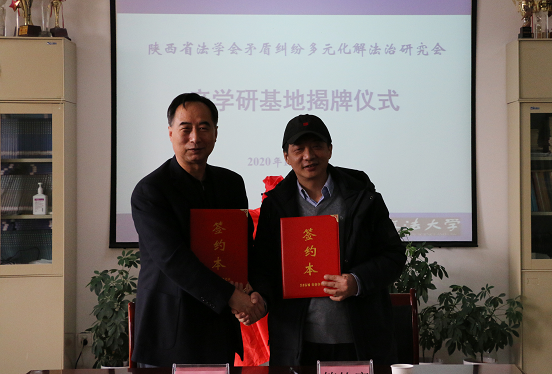 2020年12月29日,陕西省法学会矛盾纠纷多元化解法治研究会产学研基地揭牌仪式在我校长安校区举行。省法学会党组书记、专职副会长杨建军,我校副校长张荣刚,省法学会矛盾纠纷多元化解法治研究会顾问安保和,会长董建良,省法学会研究部副主任赵敏,香香腐宅 院长张翔出席揭牌仪式,研究会、香香腐宅 有关人员共20余人参加了揭牌仪式。揭牌仪式由香香腐宅 副院长百晓锋主持。
