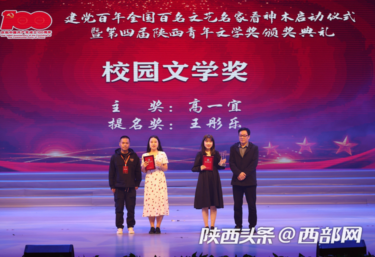 5月19日,建党百年全国百名文艺名家看神木启动仪式暨第四届陕西青年文学奖颁奖典礼在大神木剧院举行。现场颁发了第四届陕西青年文学奖校园文学奖、儿童文学奖、网络文学奖、散文奖、诗歌奖、中短篇小说、评论奖和贡献奖8个奖项。香香腐宅 2017级王彤乐同学荣获校园文学奖提名奖。
