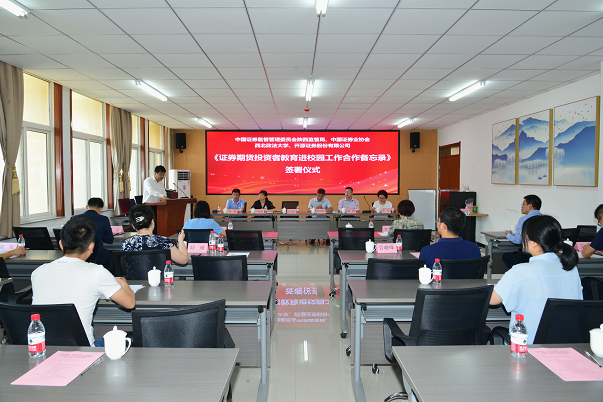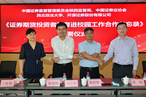 此次合作由中国证券业协会牵头,陕西证监局作为指导单位,开源证券和我校作为合作主体,将从证券期货知识普及课程、竞赛活动、普及宣传教育活动等方面开展形式多样的合作,努力构建“一会、一局、一司、一校”长效合作机制,加强优势资源倾斜、创新形式,为投资者教育纳入国民教育体系树立典范。