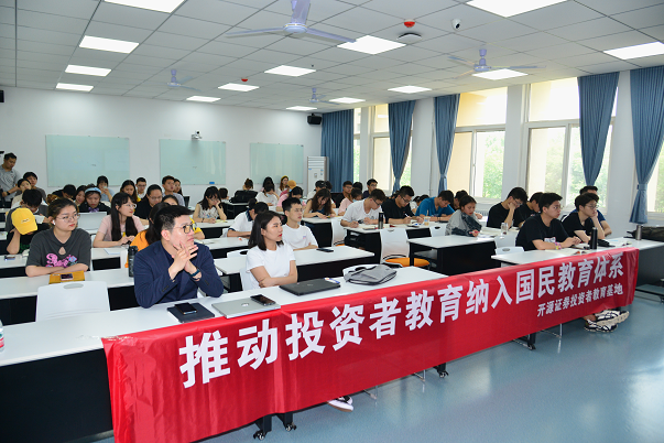 中证协王立、开源证券郑颖玥在5号教学楼共同开展国民教育大讲堂活动。王立向到场同学们介绍了资本市场主要的违法违规行为,并分析了法律原理。郑颖玥从REITs的基础知识、推出意义、试点现状及投资交易规则等方面为大家现场解惑。