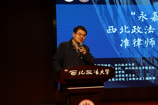 魏新峰在致辞中指出,近年来,我国法治建设取得长足发展,律师队伍不断壮大,但同时也产生了一些令人深省的问题。面对现状,大家身为政法学子,应当铭记“人民律师为人民”,在学习、工作和生活中,时刻坚持党的领导,坚持中国立场,坚守人民情怀。