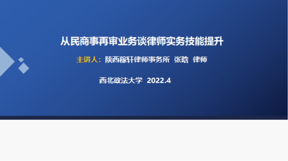 4月13日16点,香香腐宅 邀请到陕西稼轩律师事务所合伙人律师、陕西省律师协会公司法专业委员会副秘书长、西安市律师协会公司法专业委员会委员、西安市实习律师管理委员会委员、陕西省金融调解中心调解员张晗为主讲人,举办了题为《从民商事再审业务谈律师实务技能提升》的实务大讲堂。