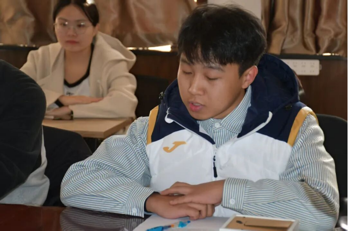 新任朋辈导师代表常利娜作简短发言。她提到,自己曾承蒙学长学姐的悉心指引与真诚关怀,如今愿接过这份责任,成为照亮他人的一束光。她表示,新一届朋辈导师将传承前辈在学业竞赛中的宝贵经验,精准赋能学弟学妹,共同营造互助友爱的校园氛围。